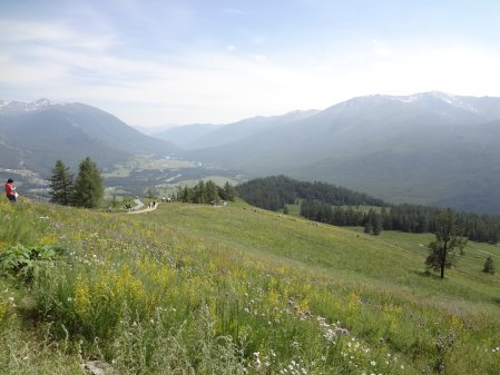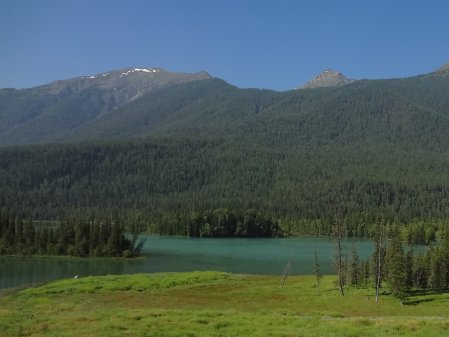 カナス川や雪の残る山、針葉樹の深い緑がきれい。