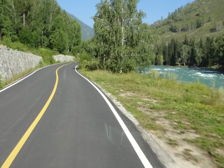 シャトルバスは、観光センターまで約1時間ほど、カナス川に沿って進みます。