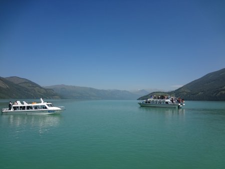 カナス湖行きに乗り、カナス湖の湖畔へ。そして、三道湾巡りの遊覧船で湖巡り。